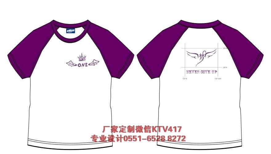 1班班級(jí)文化衫圖案,選個(gè)用的是紫色圓領(lǐng)T恤衫,前面是0NE 上面是皇冠,左右是翅膀,代表著1班奪冠,持續(xù)飛翔。后面是夢(mèng)翅膀。很有進(jìn)取元素。
