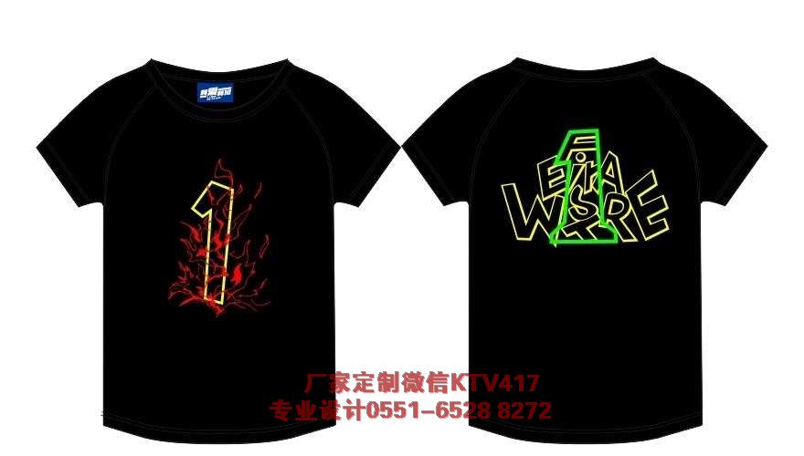 1班班服LOGO,是黑色的T恤衫,前面印刷紅色的火,就是紅色的線條,白色的數(shù)字1