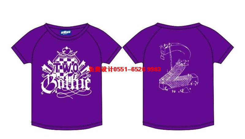 這是紫色的圓領(lǐng)T恤班服,圖案采用白色環(huán)保漿料印刷。看似亂,其實(shí)是個(gè)性張揚(yáng)的表現(xiàn)。后面是立體數(shù)字2