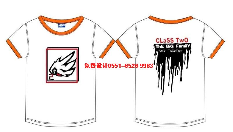 紅色插肩袖班服,前面整體看上去是一大片鮮花,中間印上CLASS 2.后面是皇冠加翅膀。圖案也是紅色的,和衣服色調(diào)比較配。