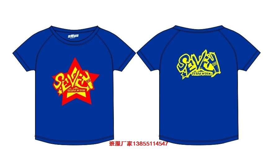 7班班服圖片,這款7班班服圖片,底衫是藍色T恤衫,前面印刷紅色的