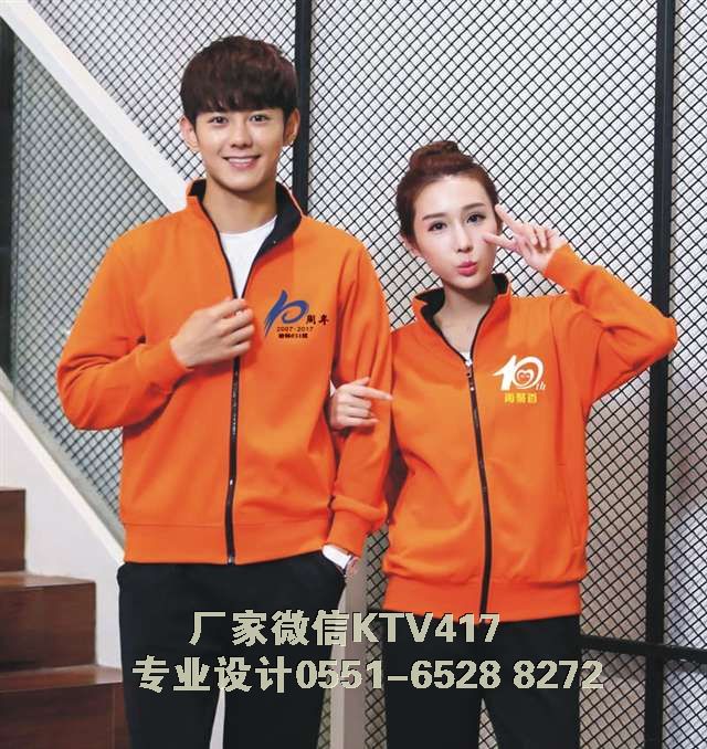 這款橙色的立領(lǐng)衛(wèi)衣采用抓絨面料,版型時尚,顏色純正。橙色的外套,黑色的里料。可印刷20年,或者10年圖案。