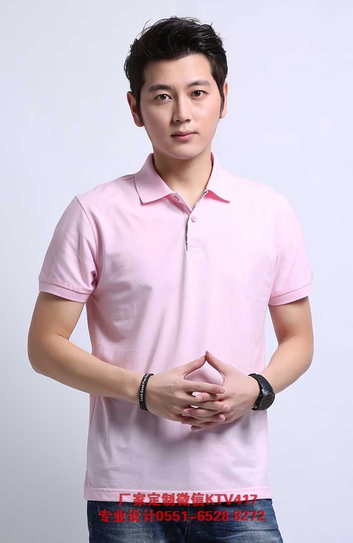 粉色韓版POLO衫,女生大多穿粉色的POLO衫,該款衣服采用的是韓國(guó)流行的版型,袖口,領(lǐng)口都做了精致的處理。粉色的POLO衫一般印刷紅色的LOGO或者枚紅色的圖案,比較搭配。