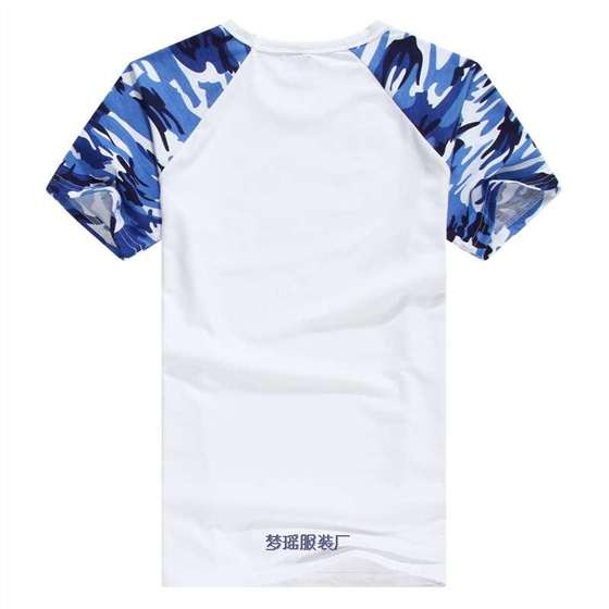白色底衫藍色迷彩插肩文化衫