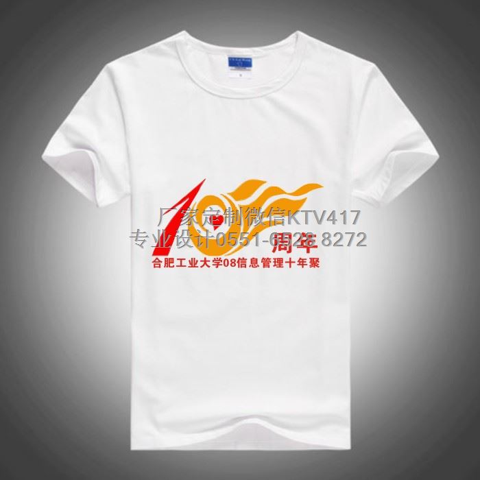 白色圓領純棉文化衫,這款畢業(yè)10年圖案采用的設計 理念是,要多彩的,不計成本。主題采用的是菱形多色填充。