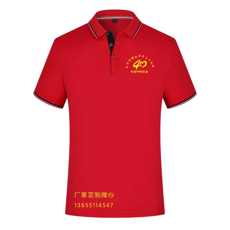 翻領(lǐng)款聚會(huì)服裝,相對(duì)于圓領(lǐng)服裝,價(jià)格高點(diǎn)。適合對(duì)服裝款式有要求的聚會(huì)班級(jí)。常用的翻領(lǐng)服裝顏色也是白色,紅色。