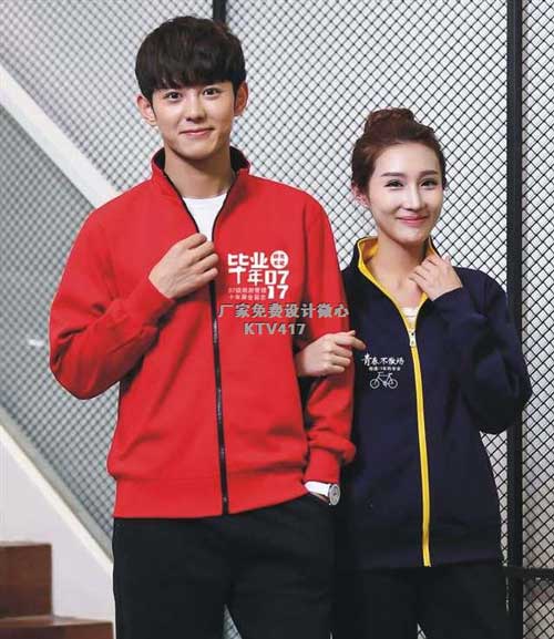 聚會衛(wèi)衣分為拉鏈,套頭款式。聚會拉鏈衛(wèi)衣按分純色款式和拼色款。純色款就是全衣一個顏色,通體白色或者紅色。拼色款衛(wèi)衣就是袖子或者領(lǐng)間有不同于衛(wèi)衣底色的色塊或者色條。拼色款同學聚會衛(wèi)衣,款式新,受到同學們的青睞。衛(wèi)衣保暖聚會同學們多數(shù)都選擇,定制一件加厚保暖抓絨衛(wèi)衣。定制聚會衛(wèi)衣印刷聚會相關(guān)圖片或者印字,即是一件衣服,又是一件紀念品,一石二鳥。